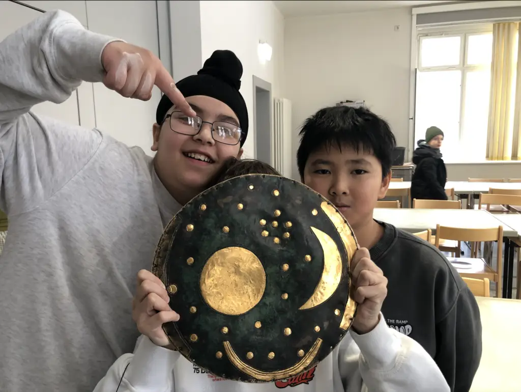 Im Rah­men der Work­shops erhiel­ten die Klassen Ein­blicke in die Lebens- und Arbeitswelt der Steinzeit. Neben der Her­stel­lung von Gefäßen befassten sie sich auch mit der Gestal­tung von Höh­len­malereien sowie der Bear­beitung von Led­er und Stein. Nach inter­es­san­ten Ein­blick­en hat­ten die Schü­lerin­nen und Schüler die Möglichkeit, in Rundgän­gen Exponate aus dem Muse­um zu begutacht­en. Die Teil­nehmer stell­ten inter­es­sante Fra­gen und zeigten sich von den orig­i­nalen Fund­stück­en und Rekon­struk­tio­nen beein­druckt. Ein großes High­light waren dabei die Him­melss­cheibe von Nebra und das Skelett der Schamanin von Bad Dür­ren­berg. Im Anschluss an die Work­shops und Führun­gen wurde den Schü­lerin­nen und Schülern deut­lich, dass unsere Vor­fahren keineswegs „prim­i­tiv“ waren, son­dern eine hohe Erfind­ungs­gabe besaßen.