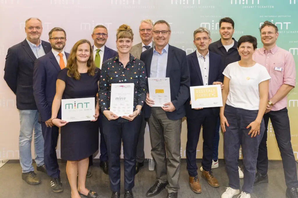 MINT-freundliche Schule: Schulen erfüllen mindestens zehn von 14 MINT-Kriterien und binden Mathematik, Informatik, Naturwissenschaften und Technik nachhaltig in den Schulalltag ein. Sie sind sichtbare Leuchttürme für Schülerinnen und Schüler, Eltern, Wirtschaft und Gesellschaft.