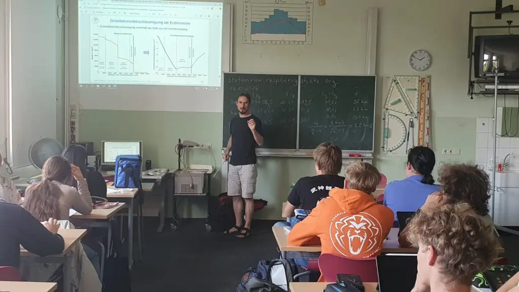 Die Schülerinnen und Schüler erfuhren, wie Seismologen aus Schwingungen im Gestein Rückschlüsse auf den Aufbau unseres Planeten ziehen. Besonders beeindruckend war, dass sie live beobachten konnten, wie der Seismograph selbst kleinste Bewegungen registriert. So wurde deutlich: Auch wenn wir das Erdinnere nie direkt sehen können, verraten uns seismische Wellen eine ganze Menge über die geheimnisvollen Schichten tief unter unseren Füßen.