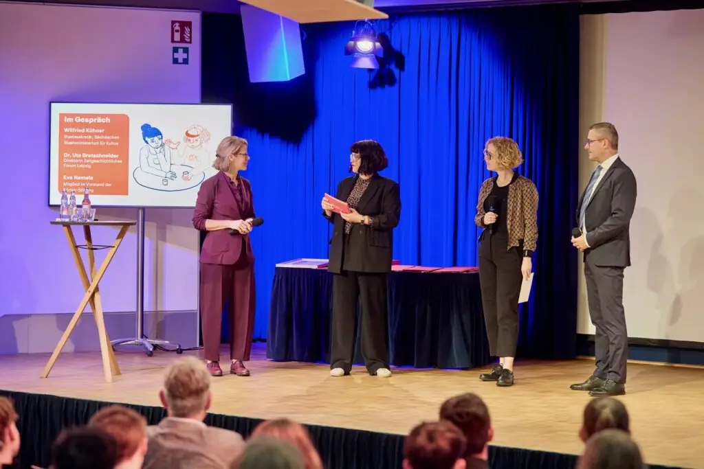 Bei der feierlichen Landespreisverleihung im Zeitgeschichtlichen Forum Leipzig wurden die Landessieger und ‑siegerinnen sowie die Förderpreisträger und ‑trägerinnen geehrt. Das Brockhaus-Gymnasium durfte sich dabei gleich doppelt freuen: