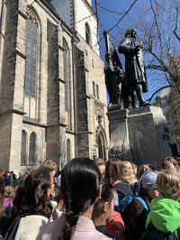 Am 21. März waren die Chorklassen des F.-A.-Brockhaus-Gymnasiums Teil der feierlichen Veranstaltung zum Bachgeburtstag in Leipzig. Gemeinsam mit vielen weiteren Schulchören der Stadt sangen unsere Schülerinnen und Schüler zu Ehren Johann Sebastian Bachs unter anderem den berühmten Choral „Jesus bleibet meine Freude“. Ein besonderes Highlight war außerdem ein eigens für den Anlass komponierter Kanon, den alle Kinder gemeinsam aufführten.