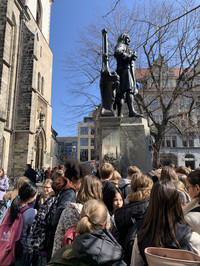 Am Freitag, den 04.04.25 fuhren wir mit dem Zug von Leipzig nach Berlin. Unsere Jugendherberge war fünf Minuten vom Bahnhof gelegen und so waren wir ganz schnell da. Nachmittags waren noch ein paar Kennenlernspiele und am Abend konnten wir noch Fragen zu unseren Präsentationen loswerden und dann war der erste Tag auch schon vorbei.