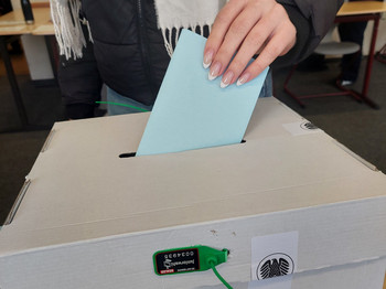 Die Lernenden der Klasse 8d unterstützen die Organisation der Juniorwahl, indem sie die Wählerverzeichnisse anlegte und die Wahlbenachrichtigungen erstellte. Die Klasse 9b war als Wahlvorstand und Wahlhelfende im Einsatz: Wahlbenachrichtigungskarten waren mit dem Wählerverzeichnis abzugleichen, die Einhaltung der Wahlrechtsgrundsätze musste beachtet werden und schlussendlich wurde die Wahlbeteiligung erfasst, und dann die Erst- und Zweitstimmen ausgezählt und geprüft — alles wie bei einer “echten” Wahl.