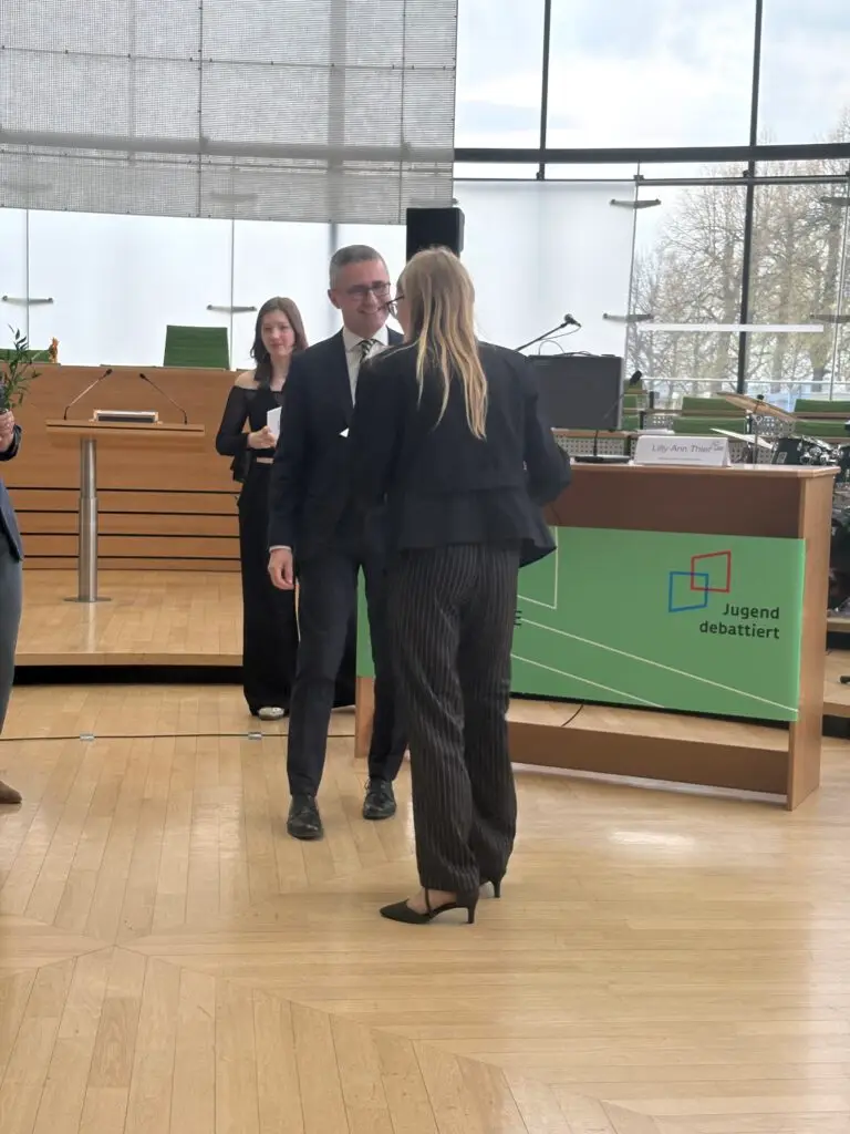 Der Wettbewerb fand mit dem Finale im Landtag einen würdigen Abschluss. In dieser besonderen Atmosphäre wurde einmal mehr deutlich, wie wichtig es ist, Argumente sachlich auszutauschen und Positionen überzeugend zu vertreten.