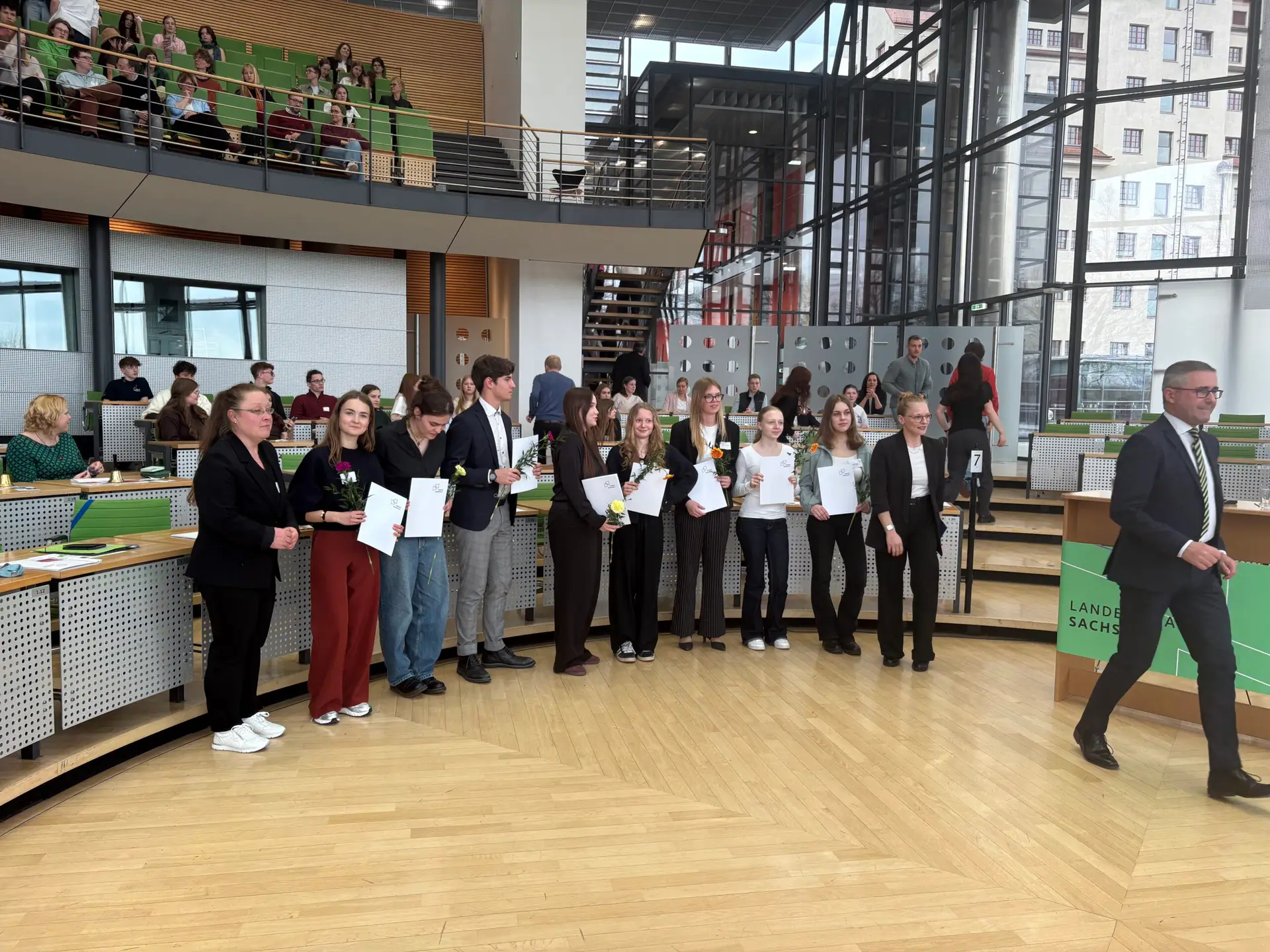 Am 13. April 2026 stand Dresden ganz im Zeichen des Wettbewerbs „Jugend debattiert“. Am Vormittag trafen sich die besten Debattantinnen und Debattanten Sachsens im Romain-Rolland-Gymnasium, bevor am Nachmittag das große Finale im Sächsischen Landtag ausgetragen wurde.