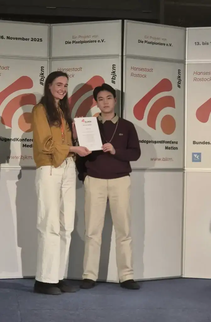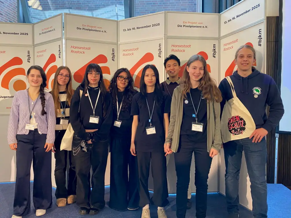 Vom 13. bis 16. Novem­ber 2025 nah­men acht der Medi­en­scouts des F.-A.-BrockhausGymnasiums Leipzig an der 8. Bun­desju­gend­kon­ferenz Medi­en in Ros­tock teil. Unter dem Kon­feren­zthe­ma „Kün­stliche Intel­li­genz und Liebe im dig­i­tal­en Zeital­ter“ bot die Ver­anstal­tung ein vielfältiges und tiefge­hen­des Pro­gramm und legte den Fokus vor allem auf Präven­tion, dig­i­tale Gesund­heit und dig­i­tale Bal­ance im All­t­ag.